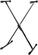 Supporto professionale per tastiera "X-style" con design a tubo singolo, dotato di regolazione a leva in nylon caricato e blocco centrale con meccanismo CROCODILE. La struttura in acciaio garantisce una robusta stabilità