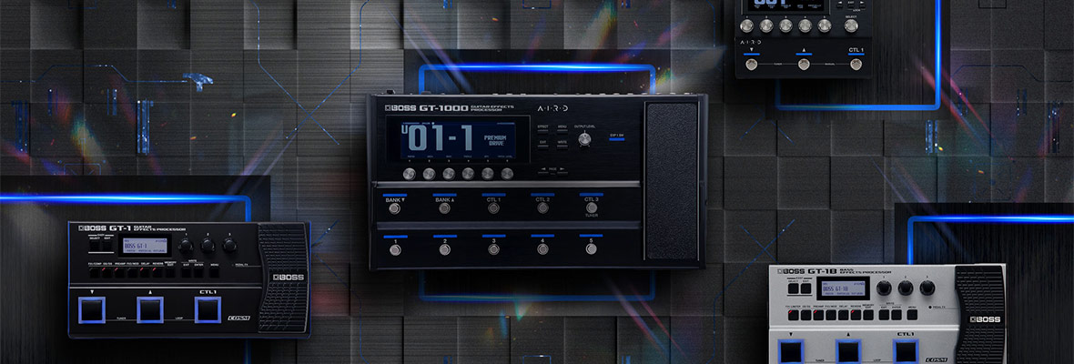 BOSS offre tre serie di pedali multieffetto distinte e uniche: GT, GX e ME. Tutti i modelli attuali di queste famiglie condividono una caratteristica fondamentale: grazie alla tecnologia A.I.R.D. e all'elaborazione in virgola mobile a 32 bit, offrono la latenza più bassa del settore, ovvero il tempo che intercorre tra la battuta di una corda della chitarra e l'ascolto del suono elaborato è inferiore a un millisecondo. Il risultato? Una sensazione di gioco superba.